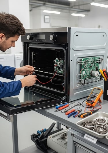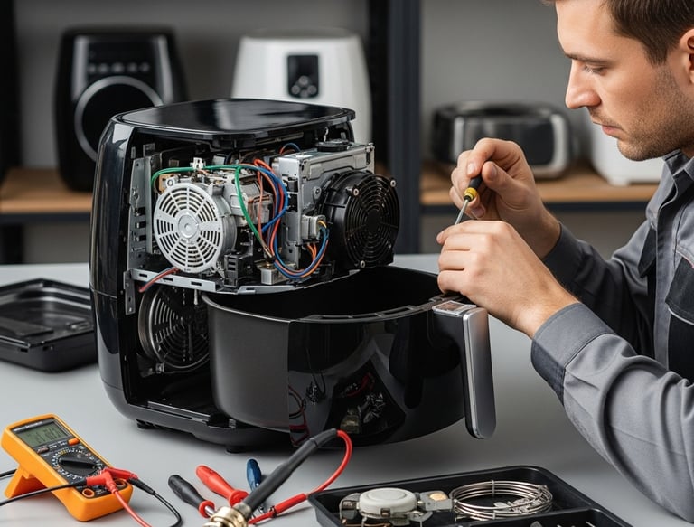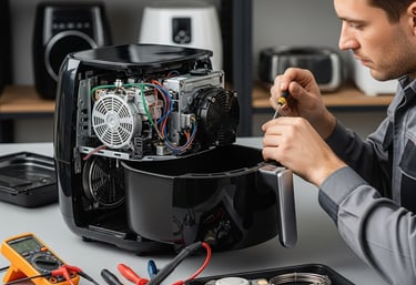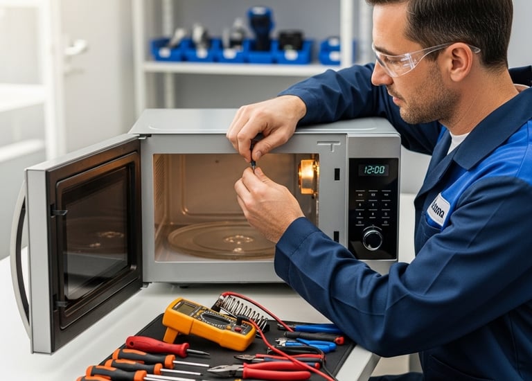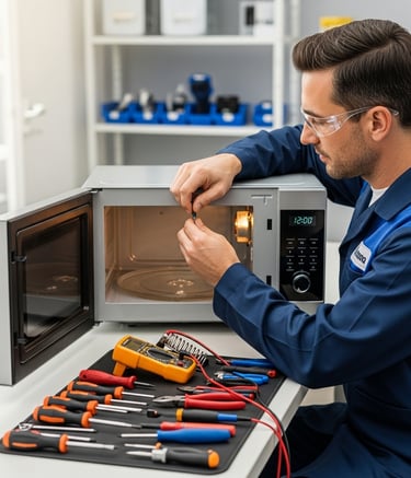 Consertos de lavadoras, micro-ondas, fornos elétricos e air fryers.